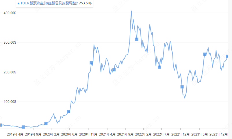 2018-2023年Tesla股价变动图