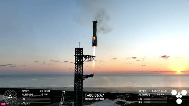 This was one of the most remarkable and high-risk spaceflights to date. On Sunday, SpaceX launched its massive Super Heavy Starship rocket on an unmanned test flight, successfully completing a groundbreaking engineering feat by using the giant "Mechazilla" mechanical arms on the launch pad to catch the descending booster stage mid-air.